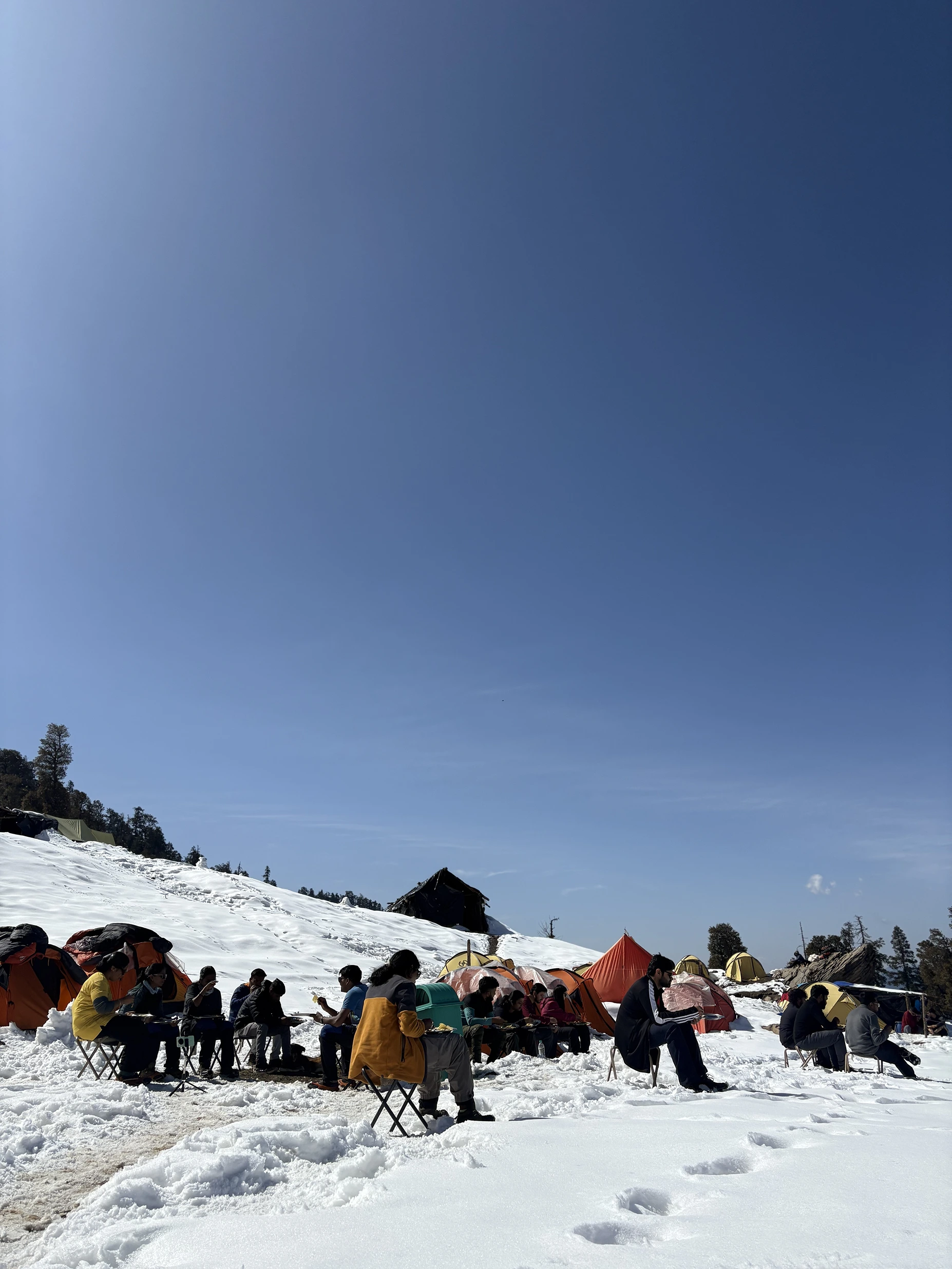 Premium Trek Equipment: Use of high-grade Sleeping Bags, spacious Sleeping Tents, and dedicated Kitchen, Dining, and Hygienic Toilet Tents.